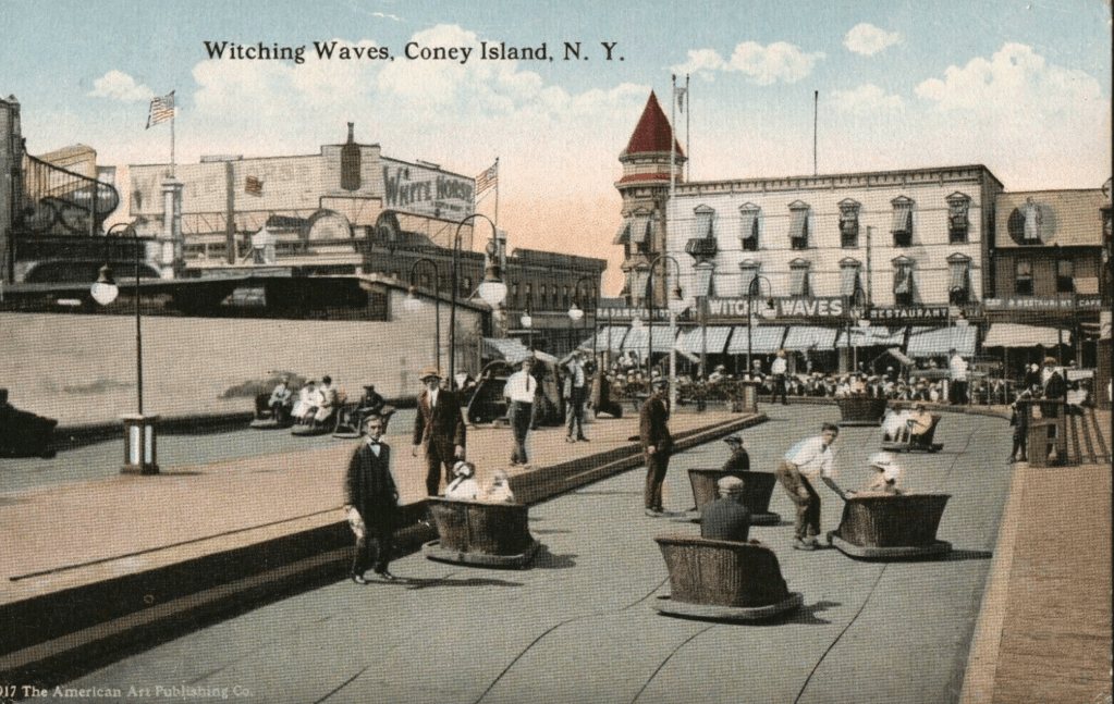 Snug also remembers seeing a Fatty Arbuckle film set at Coney Island. This is a still from that movie, released in 1917. The actress’ outfit is how I imagine Snug on her outtings. That bow!
